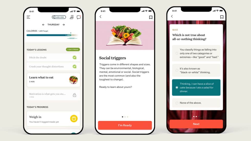 That’s why Noom includes daily lessons that are based on psychology. These short, digestible lessons help you recognize the triggers that cause you to overeat and conquer the thought distortions (like “I’ll never lose this belly fat”) that make you want to give up.