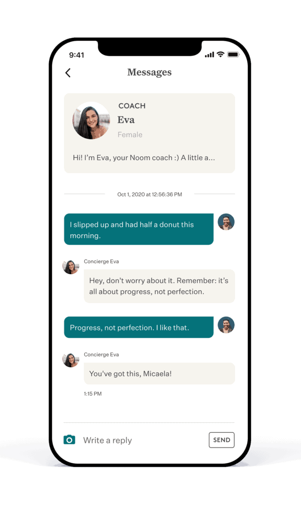 Your coach can help you tailor the Noom program to your unique needs, send you informational articles, and even take a look at your daily logger to make suggestions about your food choices.