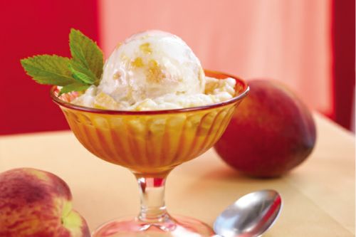 - Blend 1 ½ cups of peaches with yogurt and honey until smooth.