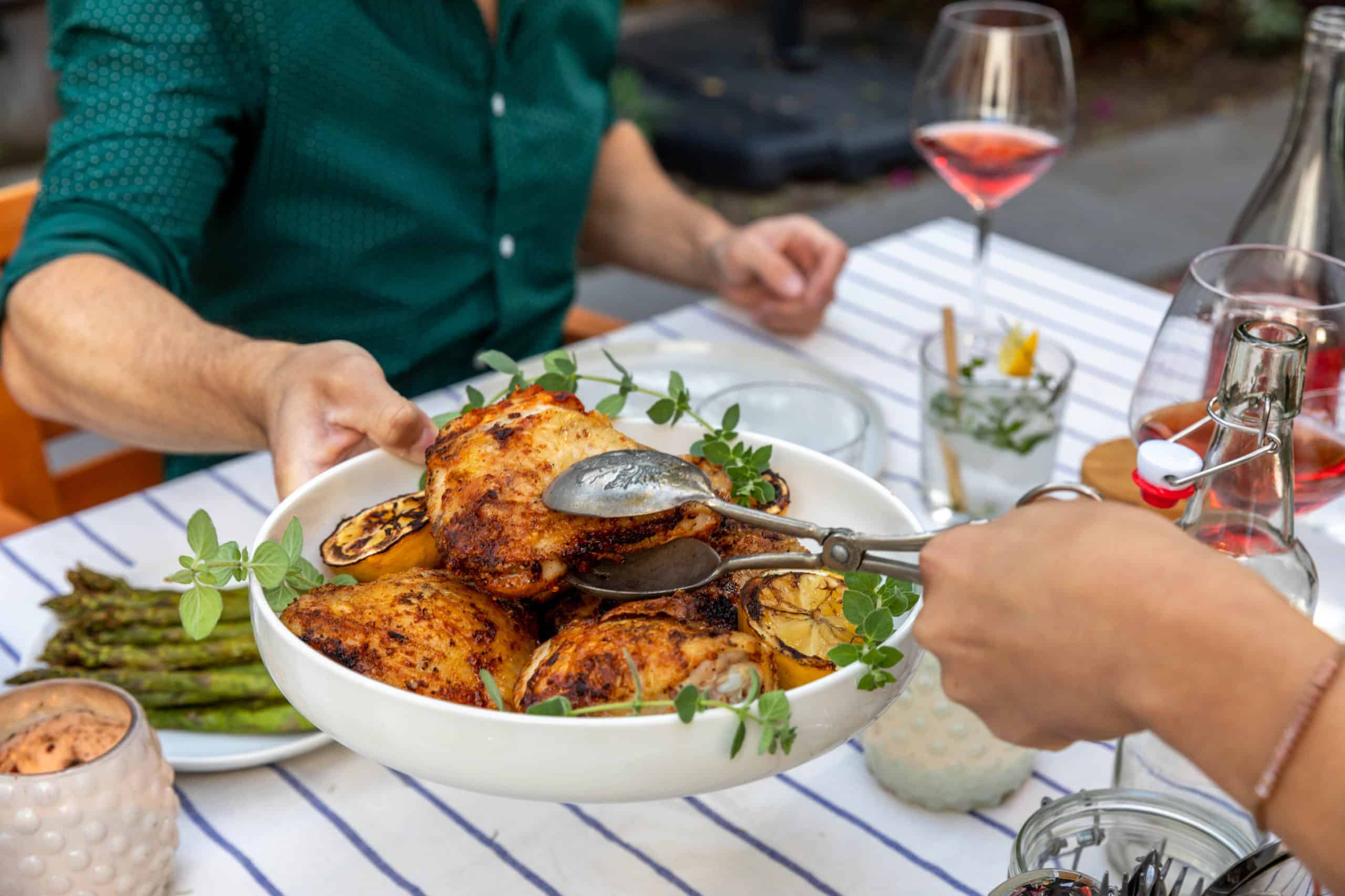- Add cooked chicken and squeeze lemon juice over entire dish.