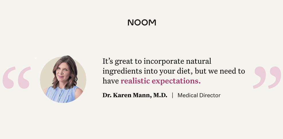 “I’m excited to see more people adopting holistic practices that complement Western medicine,” says Dr. Karen Mann, Medical Director at Noom. It’s great to incorporate natural ingredients into your diet, but we need to have realistic expectations.”