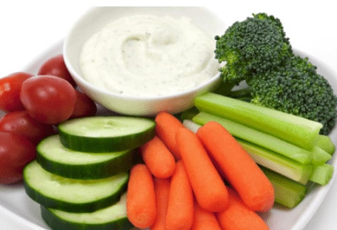 Zu jeder Mahlzeit ein Stück Obst oder etwas Gemüse mit einer kleinen Portion Milch oder Erdnussbutter. Beispiele sind eine Tasse fettarme Milch, pflanzliche Milch oder fettarmer Joghurt gepaart mit einer Birne, einem Apfel oder einer Tasse Erdbeeren. Obst und Milchprodukte können auch als Snacks gegessen werden. Genauso wie Käse oder ein Glas Magermilch mit einer Handvoll Himbeeren oder Heidelbeeren.