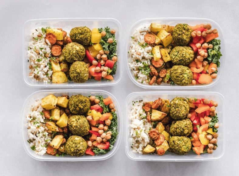 Eine Möglichkeit die Essensvorbereitung einfach zu gestalten, ist einige Portionen der Proteine für die Woche zu backen, genug Reis und Quinoa für mehrere Mahlzeiten vorzubereiten und klein geschnittenes Gemüse im Kühlschrank zu lagern bevor es benutzt wird.