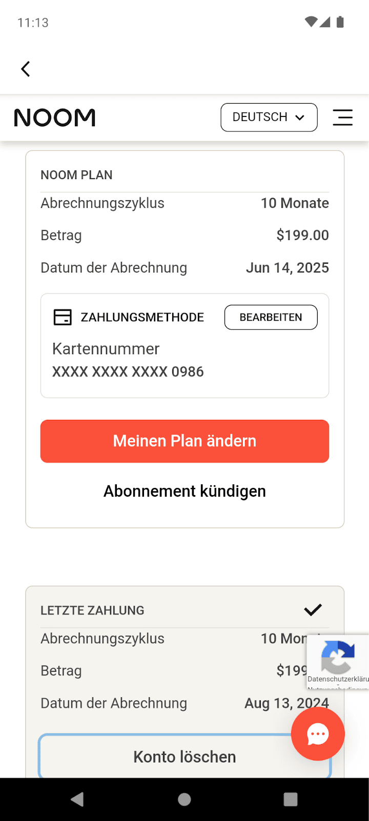 Wenn du kündigst, während du ein aktives Abonnement hast (nach der Testphase), hast du bis zum Ende des Abrechnungszeitraums immer noch Zugriff auf deine Premium-Funktionen wie deine Noom Guides/Coaches und den Noom-Kurs, aber dein Abonnement verlängert sich nicht automatisch und wird dir nicht mehr in Rechnung gestellt.