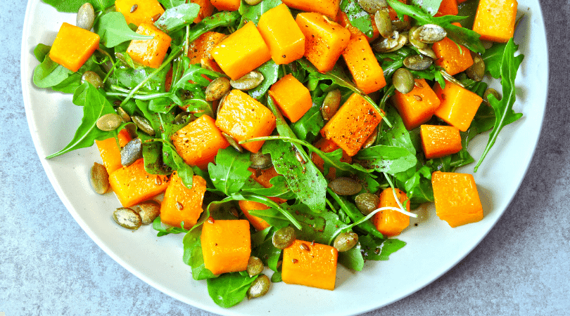 - Rociar con dos cucharadas de aceite de oliva sobre la calabaza, zanahoria y apio, salar al gusto y llevar al horno por 60 minutos.