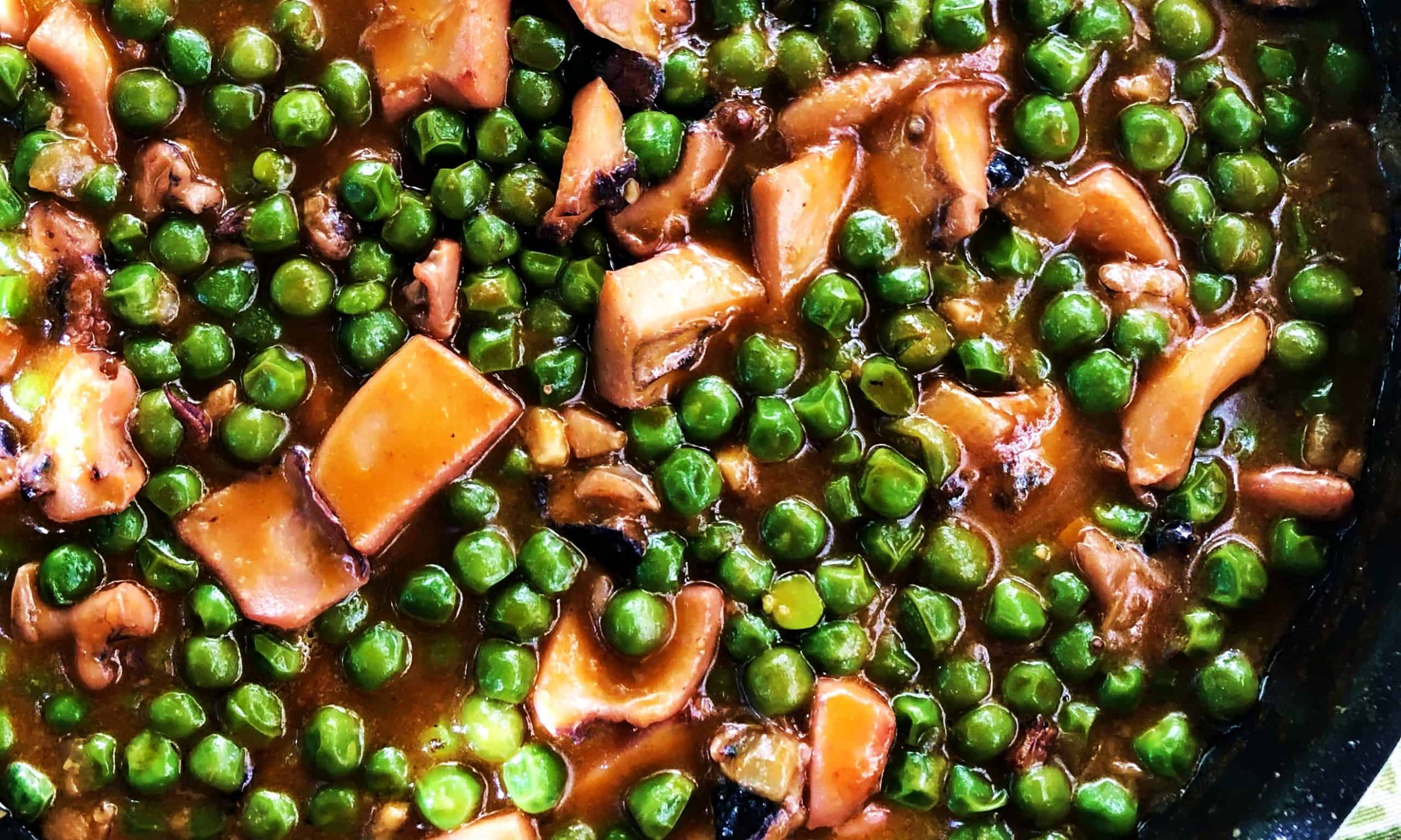 - Seguidamente añade los guisantes congelados y deja cocinar hasta que estos estén blandos.