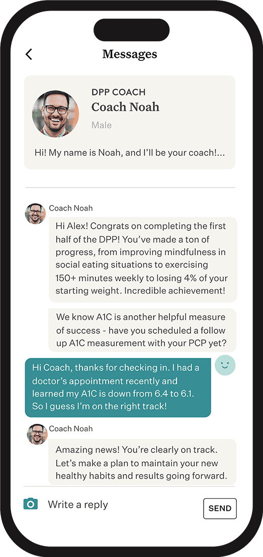 Small, daily lessons based on the CDC’s approved DPP curriculum, customized to each member’s unique needs and goals.